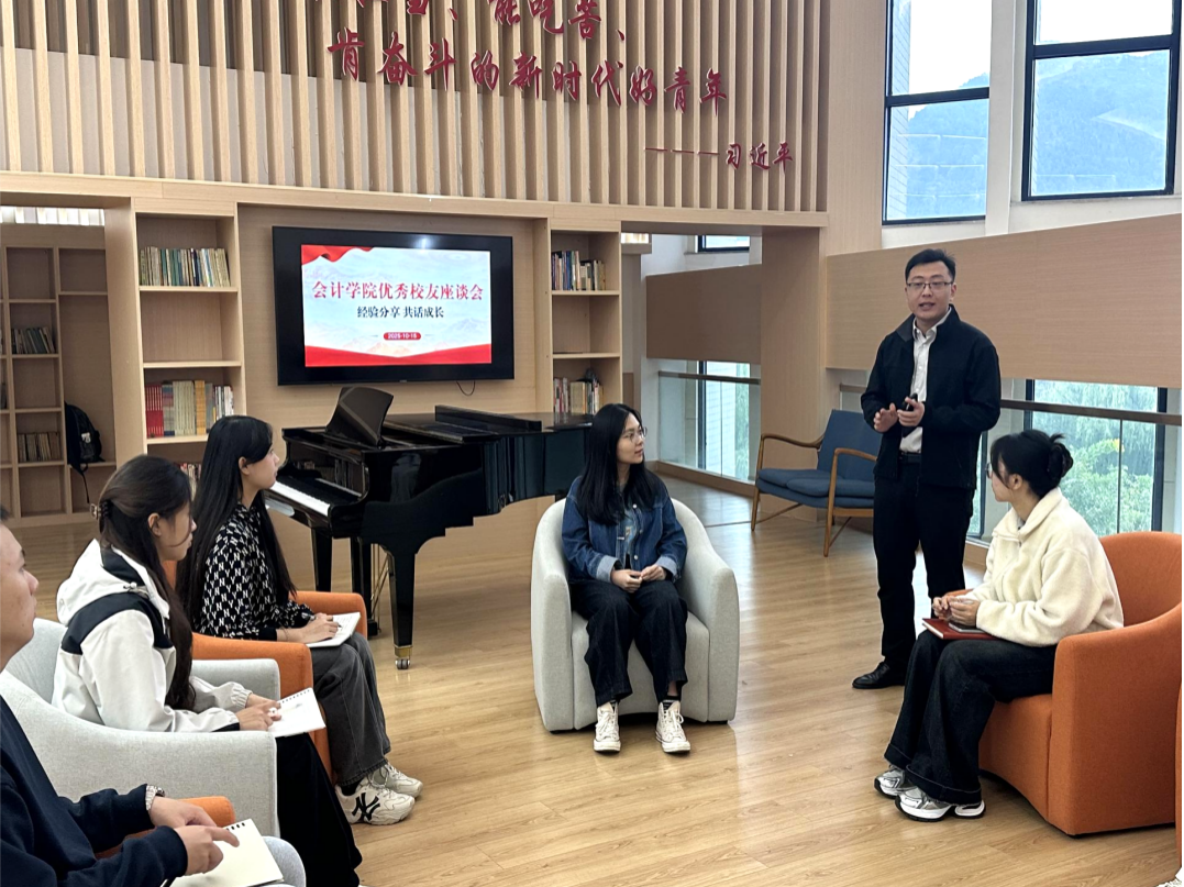 本次交流不仅使同学们对财会专业的深造路径有了更加清晰的认知,还在学习方法与心态调整上得到了具体指导,对未来的规划也进一步得以明确。未来,会计学院将持续搭建优秀校友与在校学生的交流平台,充分发挥校友资源的引领作用,为学院人才培养与学生成长成才注入更多活力。