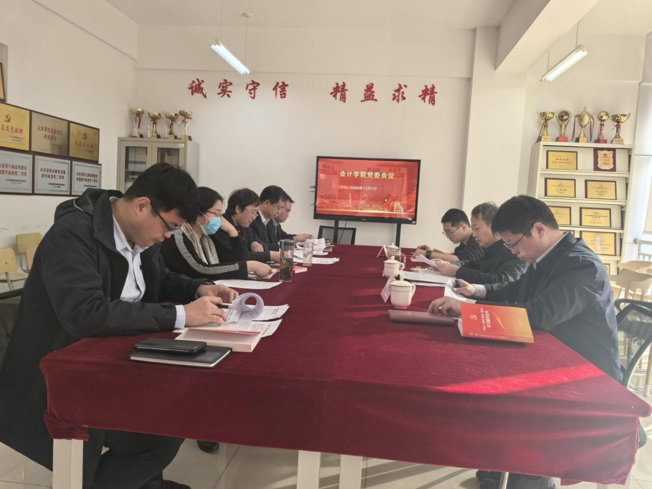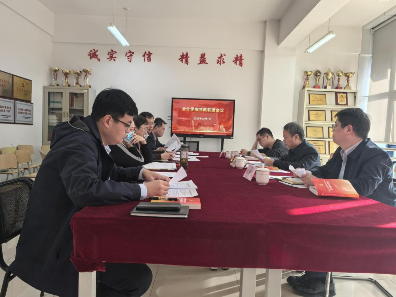 韩作生对会计学院党委严格落实议事规则、严谨规范开展工作的态度给予充分肯定,对存在的问题给予了指正。并提出三点要求:一是要持续深化理论武装,将学习贯彻习近平总书记系列重要讲话精神与学院实际工作紧密结合;二是要坚决守好意识形态主阵地,特别是教材选用、课堂讲授、学术出版等关键环节,必须严把政治关、学术关、质量关,确保教育领域的绝对安全。三是要大力加强内涵建设,鼓励教学创新,凝练学科特色,夯实人才培养基础,全面提升学院的核心竞争力和办学水平,为推动学校事业高质量发展贡献智慧和力量。
