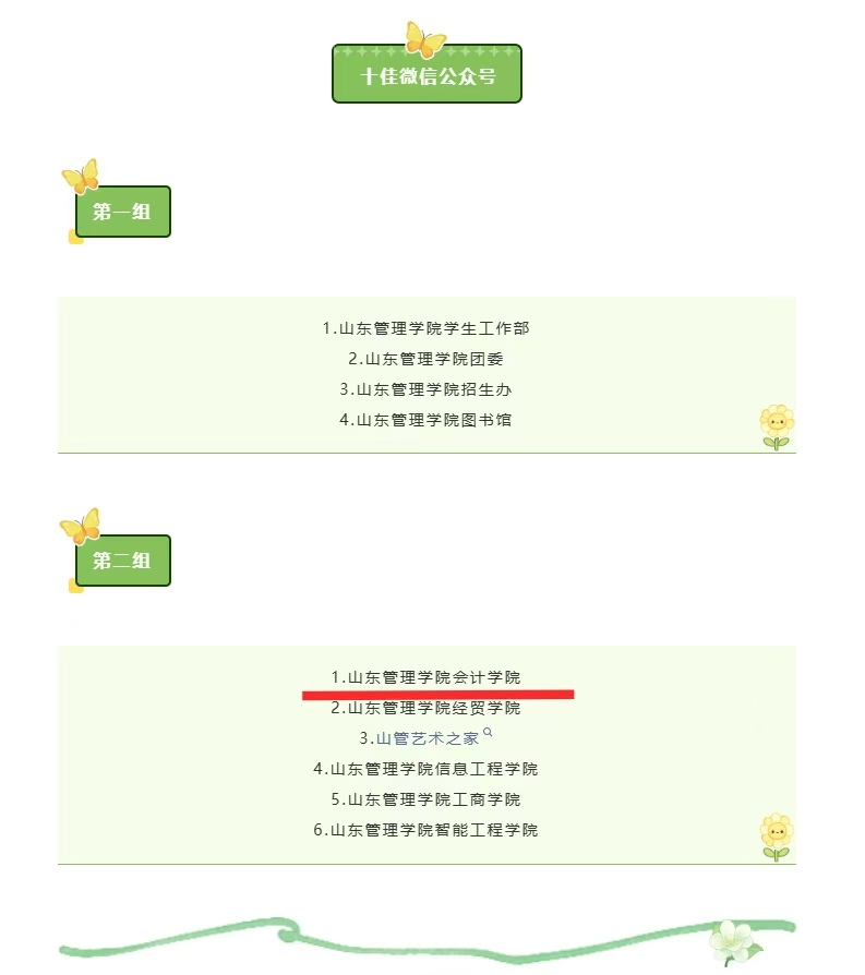 近日,学校开展了2025年度校园“十佳微信公众号”评选活动。评选根据自评材料、发文数量和质量、浏览量、关注度等指标,结合网络投票情况,经专家组评审,会计学院微信公众号成功获评学校2025年度“十佳微信公众号”。