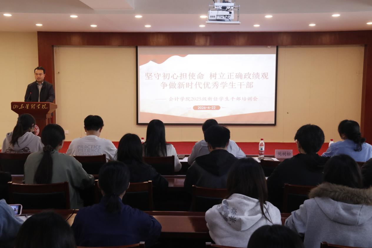 培训会上,刘树松结合立德树人根本任务,以及会计职业“诚信为本、操守为重”的职业特质,围绕育人初心、政绩观践行、能力提升、纪律作风、集体建设五个维度,与在座学生干部作深入交流,并希望各位学生干部以此次培训会为起点,以饱满的热情、务实的作风、扎实的能力,努力成为政治强、作风正、业务精、纪律严、口碑好、政绩实的新时代优秀学生干部,为学院高质量发展贡献青春、智慧和力量。