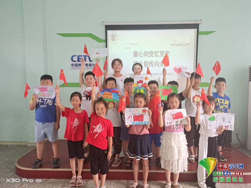 7月17日下午,部分队员与当地舞蹈学校联系,在舞蹈学校进行“童心向党忆党史,薪火相传向未来”的红色主题宣讲活动。在学校门口,孩子们便热情迎接实践团的队员,并将团队成员带到二楼教室,队员们将自己在参观学习红色文化以及百年党史中的心得体会,以PPT的形式与小朋友们进行声情并茂的交流展示。随后,团队成员向孩子们送出队员们亲手画的关于党和国家的绘画作品,每一幅作品都是队员们在学习后的理解,饱含着对英雄先烈的敬仰之情,对党和国家的热爱之情,希望这些作品能够启迪小朋友们,培养他们爱国爱党之情。