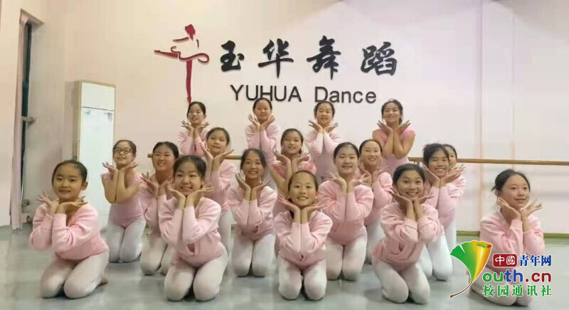 图为团队成员在宣讲活动后与舞蹈学校孩子的合影。中国青年网通讯员 梁宝仪 摄