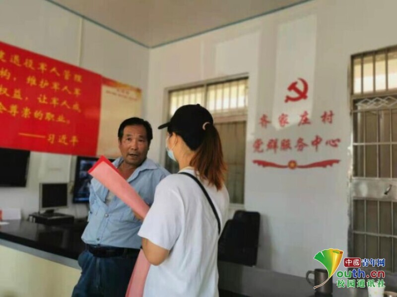 图为通讯员在采访村主任。中国青年网通讯员 杨滢璇 供图